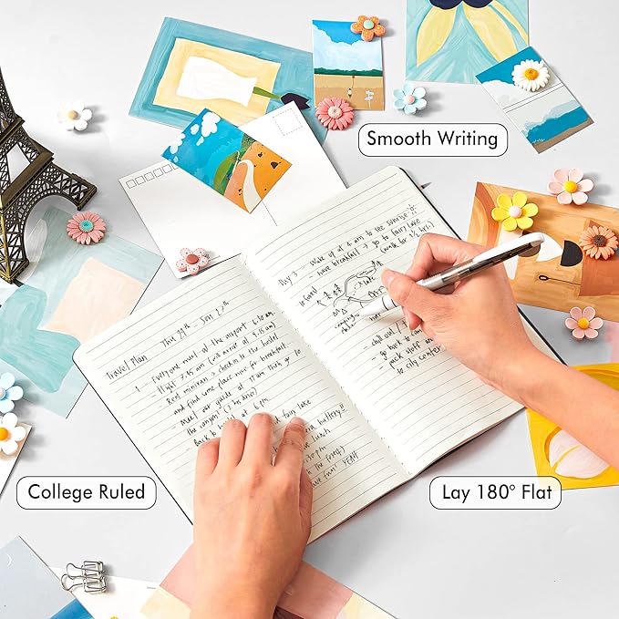 - These travel journals bulk for women have 92 blank lined pages (46 sheets), which would be sufficient for daily usage. The note taking notebooks have a smooth cover, round corners and tight stitching, which are designed to lay 180° flat. Some quick notes can help you remember important dates and find the page you want in a very short time.