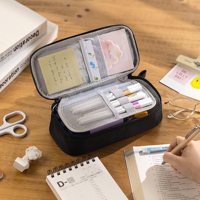 CICIMELON Durable Pen Pencil Case for School Supplies, High Capacity Pencil Bag Pouch Organizer for Teen Girls Boys Adults, Black