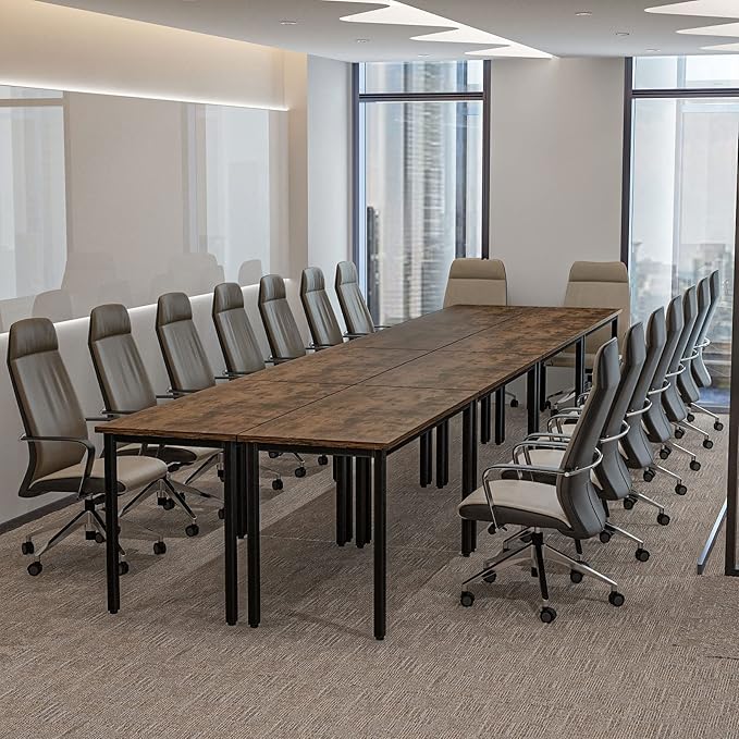 Bonzy Home Conference Tables 18ft Office Computer Desk for Meeting Room Study Writing Printer Table Meeting Seminar Table for 20 People Rustic Vintage Brown 8PCS 220.4"x47.2"x29.5"