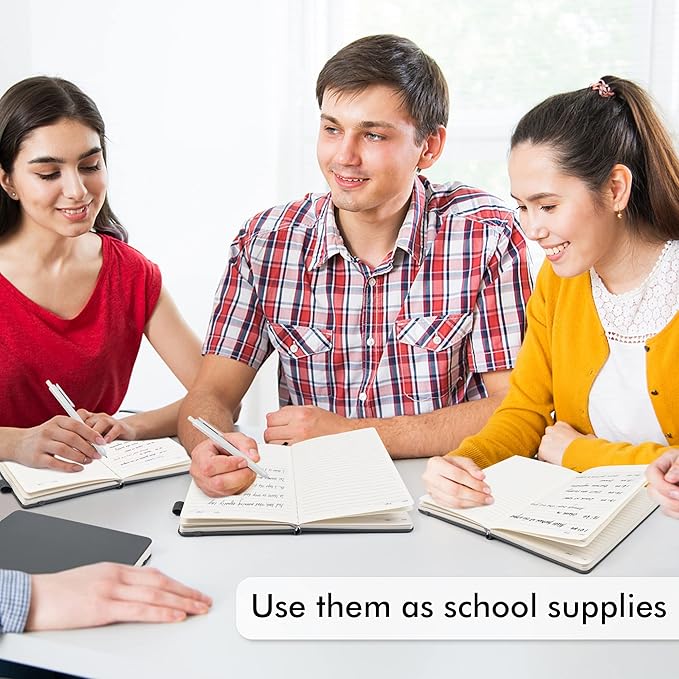 - Feela 18 Pack Classic Ruled Notebooks contains 18 gray ruled sturdy cover notebooks and 18 Black Retractable Pens. Each of the notebooks measures 8.3” x 5.1”, which is perfect to carry and easily held by young girls and boys. These black cute pens are customized to be placed in the pen holder, which is pretty convenient.
