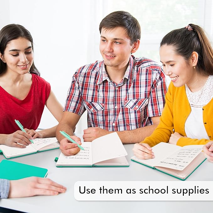 - Feela 24 Pack Classic Ruled Notebooks contains 24 aqua ruled sturdy cover notebooks and 24 Black Retractable Pens. Each of the notebooks measures 8.3” x 5.1”, which is perfect to carry and easily held by young girls and boys. These black cute pens are customized to be placed in the pen holder, which is pretty convenient.
