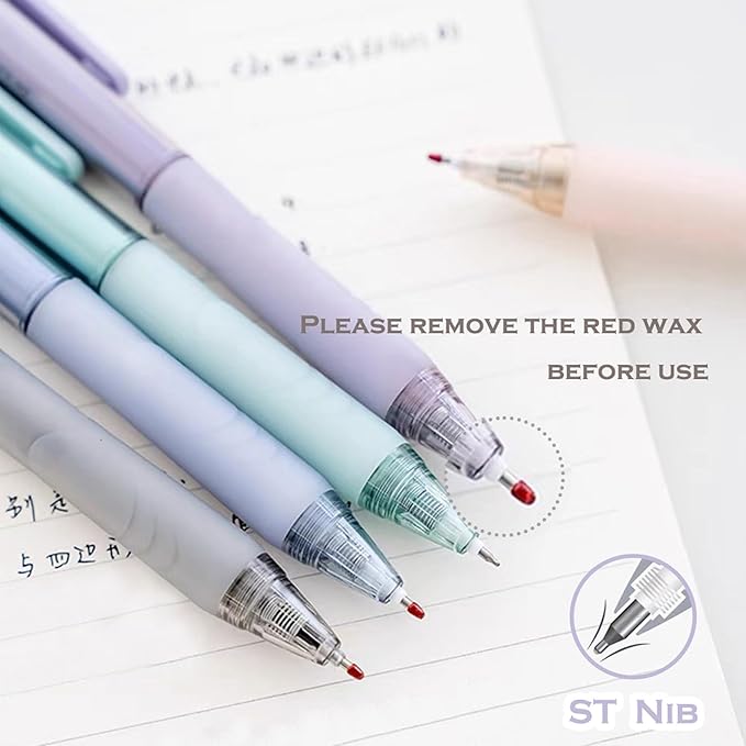 HeTaoCat Retractable Gel Pens, 0.5mm Fine Point, Quick Drying, Writing Drawing, Black ink gel pens, Box of 6 Pens (Multicolor)