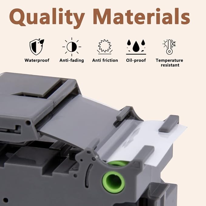 - Wide application: Compatible for Brother P-touch TZe 261 label tape is ideal to print clear, good-looking and durable labels. These labels are great for shelving, kitchen use, cabinets, file folders, USB sticks, food containers, storage boxes, personal possessions, children's school equipment with it's superior adhesive
