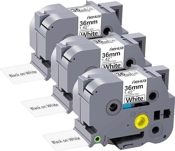 Hehua 36mm 1.4 inch Laminated White Tape Compatible for Brother P-Touch TZe-261 TZe261 TZ-261 TZ261 TZe TZ Label Tape for Ptouch PT 3600 530, 1.4'' x 26.2ft Black on White, 3 Pack
