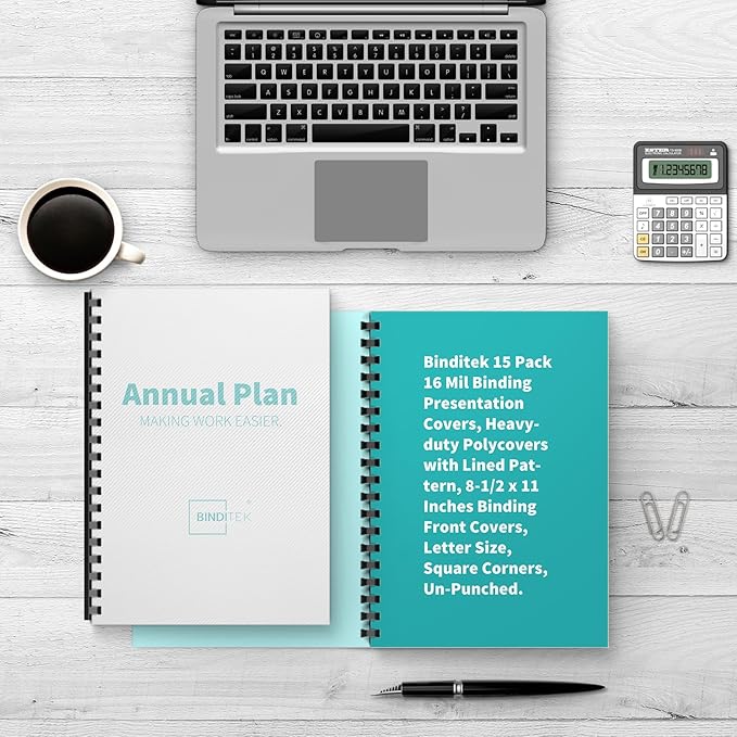 Binditek 15 Pack 16 Mil Heavyweight Binding Presentation Covers, Polycovers with Lined Pattern, 8-1/2 x 11",Letter Size, Square Corners, Un-Punched, Office Supplies