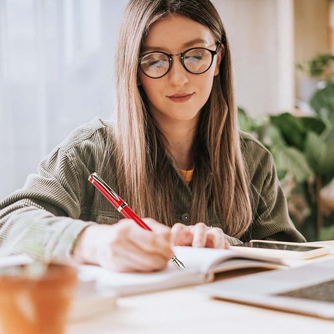 Cheericome Fountain Pen - Luxury Fountain pen set for Men & Women - Ink Pen for Smooth Writing - Fountain Pen Fine Nib,Includes 10 Ink Cartridges and Ink Refill Converter - Red