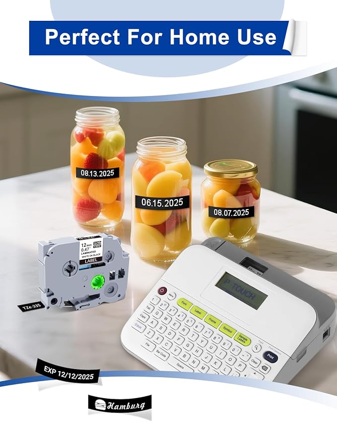 - Thermal Transfer Printing: Replacement for Ptouch 12mm tape tze tze-335, no ink required, clear printing, no need to worry about unclear, enables you to quickly distinguish and organize items in the office, home and school