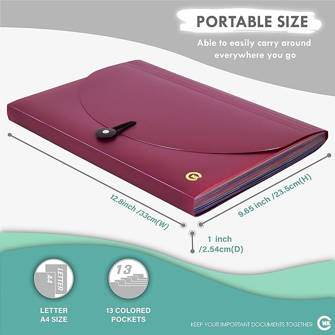 - [High Quality Material] Our 13 Pocket Expanding File Folder is made from quality PP Plastic material, Acid-Free, PVC-Free to ensure durability, water resistant and long lasting cover from every uses.