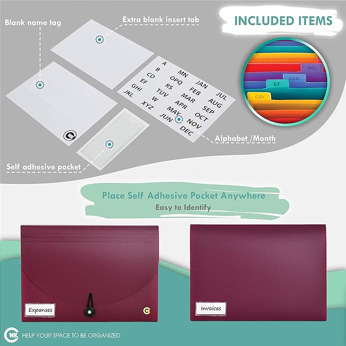 - [Sleek and Stylish Design] Our Sleek and Stylish CNK Accordian File Organizer come in 3-Packs of 13 Pocket expandable file folder with unique hand picked colors that is elegant and stylish.