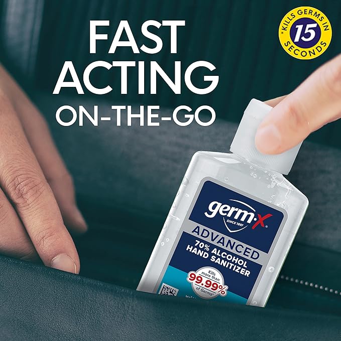 - Fast and Effective: Hand sanitizing on the go just got a lot easier. Germ-X Advanced Hand Sanitizer gel with aloe kills 99.99% of many common germs without water in as little as 15 seconds
