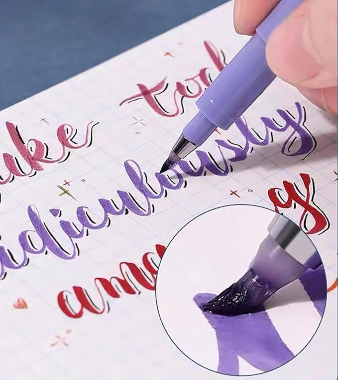 - Flexible Nibs: Our brush pen nibs are made of a unique fiber material that is soft, flexible, and smooth to write with. You can control the thickness of your lines by adjusting the force you put on the sign pen, allowing you to write thick or thin lines with ease.