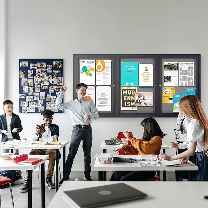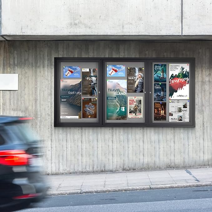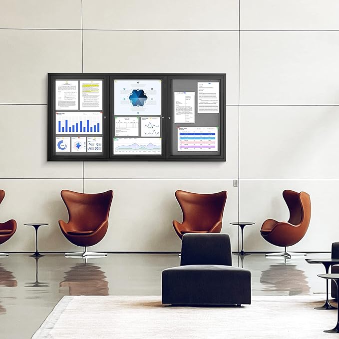 - HIGH-QUALITY MATERIAL:It is made of grey felt pin board, waterproof aluminum construction, shatter-resistant acrylic door and aluminium-plastic panel