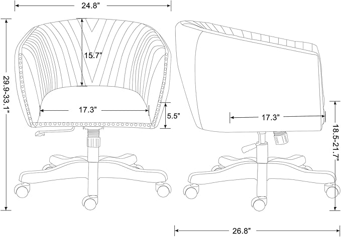 - 【Dimensions】This desk chair is 29.9-33.1" H x 24.86"W x 26.8"D. Weight capacity: 330lbs