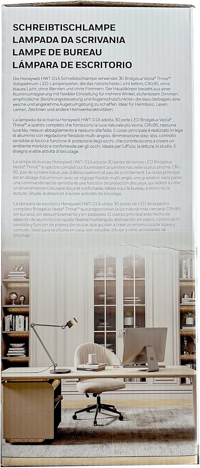 Honeywell LED Desk Lamp, 01A Sunturalux Desk Light for Home Office, 4000K Dimmable Eye Caring Natural Light Architect Lamp with Metal Swing Arm Lamp for Desk Craft Reading