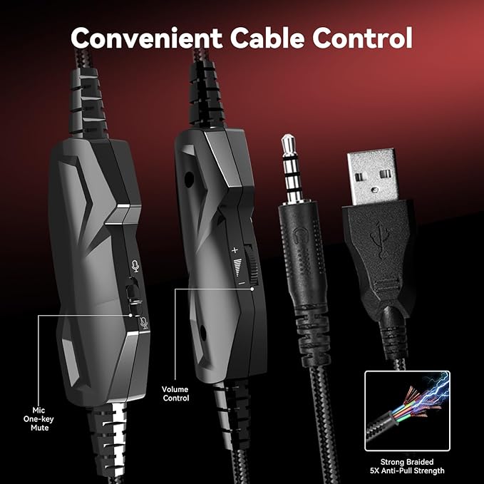 - 【Professional Gaming Headset】Gaming headphones with 6.5ft high tensile strength, anti-tangle braided cable, rotary volume control and button microphone mute.