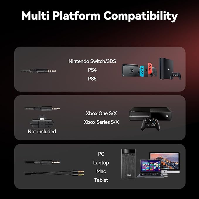 - 【Multi-platform Compatible】 Gaming headset with microphone for PC, PS4, PS5, Xbox One Series X/S (older version requires adapter), Nintendo 3DS, Switch, Laptop, PSP, Tablet, iPad, Computer, Mobile Phone, 3.5mm jack device.
