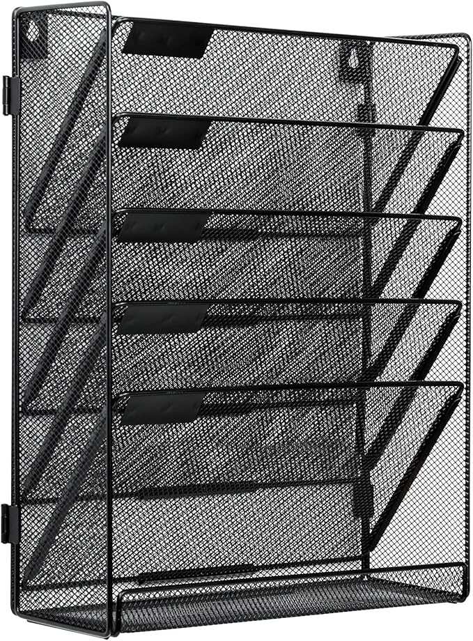 - Metal Mesh Durability: Powder-coated metal file organizer for desk resists rust & oxidation. Holds 5lbs/slot with open-grid dust prevention. Ideal for high-traffic offices.