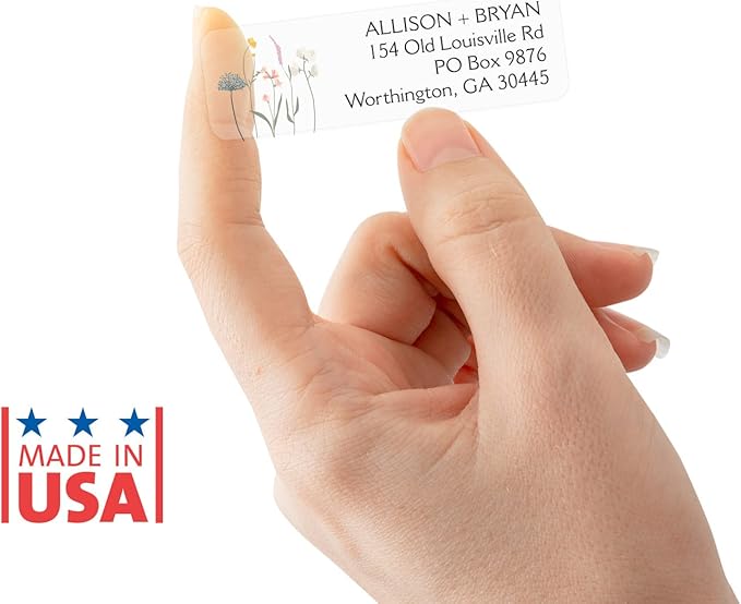 - Perfect Size: These artsy address label designs measure approximately 2Β½" x ΒΎ". Simple design for any wedding theme, trendy font choices brings charm to this timeless address label. Multicolor wildflower design complemented by clean, legible address font.