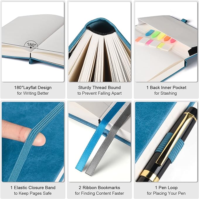 - 【Tough & Stylish Hardcover】Crafted from TOP-NOTCH VEGAN LEATHER with distinctive texture, which is animal-friendly and boasts a luxurious look. DURABLE hard cover provides superior protection to your pages compared to softcover, while offering a stable writing surface. Featuring an innovative thread-bound binding that allows for easy LAY-FLAT use, catering to both right- and left-handed users.