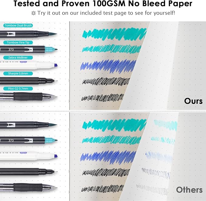 - 【Thick Paper for Writing Without Limits】Large B5 hardcover notebook (7.6"x 10"/193mm x 254mm), total 320 pages, includes 312 numbered pages(156 sheets). Each page includes 1887 dots with 5mm spacing: X37*Y51. Our INNOVATIVE PAPER TECHNOLOGY on 100GSM thick paper ensures a perfect canvas for your ideas - no bleed, no ghosting, as confirmed by tests with various pens commonly used in bullet journaling.