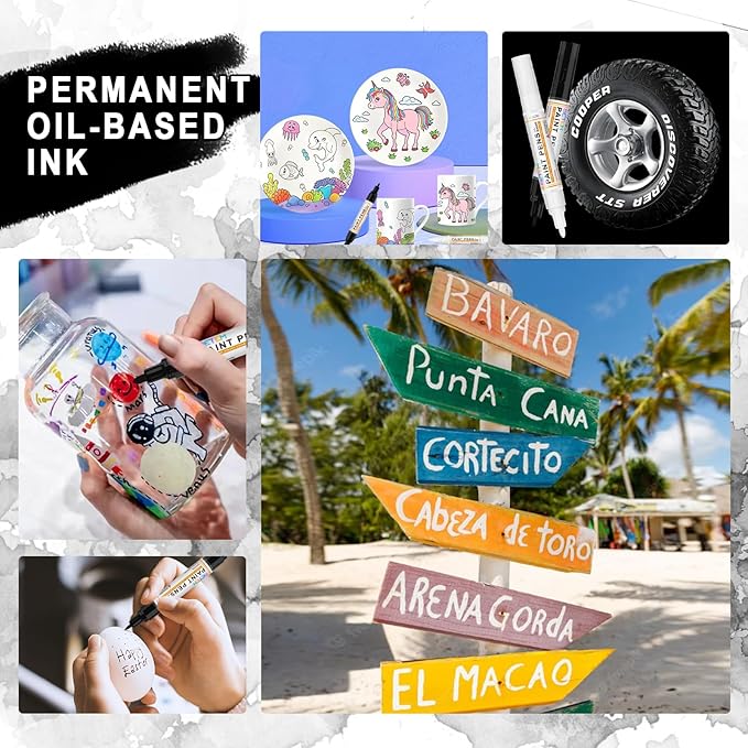 - 【Oil-Based Paint Pens】These markers are made with opaque inks that are stable, lightfast, and fast drying. Ink is waterproof, fade-proof and acid-free. Immerse yourself in the richness of oil-based ink, known for its deep pigmentation and lustrous finish.