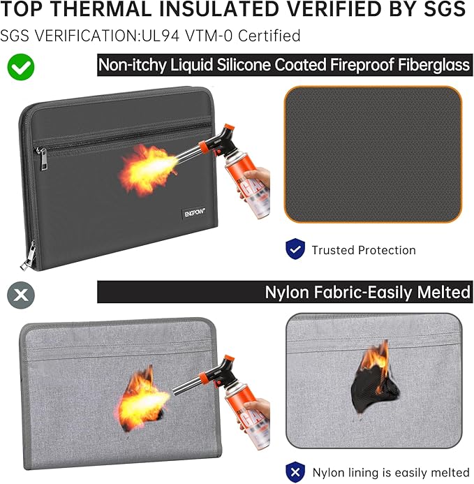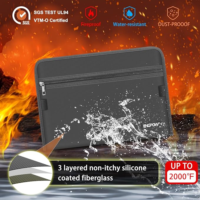 - High-Quality Materials: Protect your files with ENGPOW fireproof accordion file folder.It is made of non-itchy silicone-coated fiberglass which withstand the temperature up to 2000℉.It has been passed by SGS TEST(UL94 VTM-0 Certified).Fireproof File Folder is fireproof&Water-resistant,which can effectively protect your important documents in a fire,flood,and wet weather. They will further keep your files intact.Giving you time to save your important documents when disaster strikes.