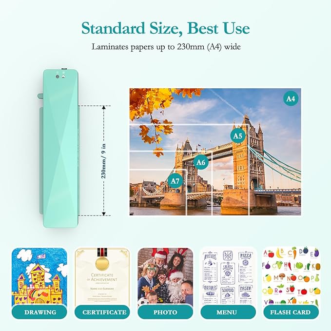 - ๐Easy to Use: One press to auto laminate, fits for 2 x 80-125mic pouches