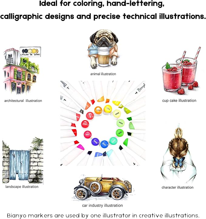 - Versatile Applications: From coloring books to architectural sketches, our Bianyo Alcohol Markers Set offers endless possibilities for artistic expression. Let your imagination run wild as you bring your ideas to life with precision and flair