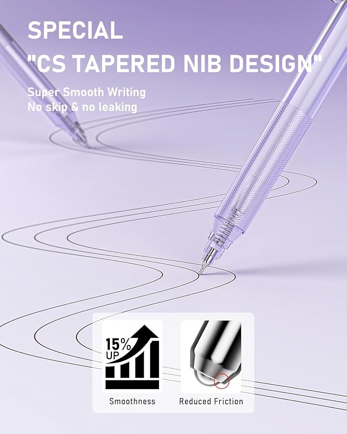 - Smooth & Versatile Nibs: Enjoy buttery-smooth writing with premium cute pens that glide effortlessly. Includes ST, bullet, CS tapered nibs, and a 4mm highlighter tip—ideal for notes, journaling, drawing, and highlighting. Built-in spring tips ensure steady ink flow and crisp lines for a smooth, stress-free writing experience