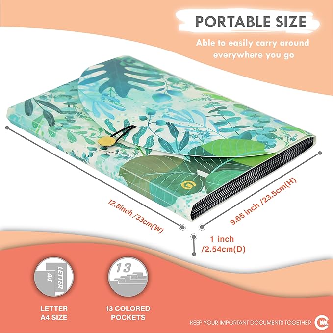 CNK File Folders Organizer with 13 Pockets Accordion Expanding Folder Documents Receipt Document Paper Pocket Filing Accordian Important expandable holder files alphabetical Labels Letter