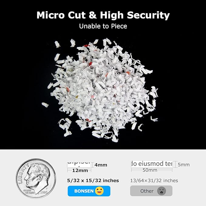 - Superior Security P-4 Level: Micro cut turns sheets of confidential document into 5/32" x 15/32" (4mm x 12mm) tiny pieces meet high security level P-4 standards for home office heavy duty use