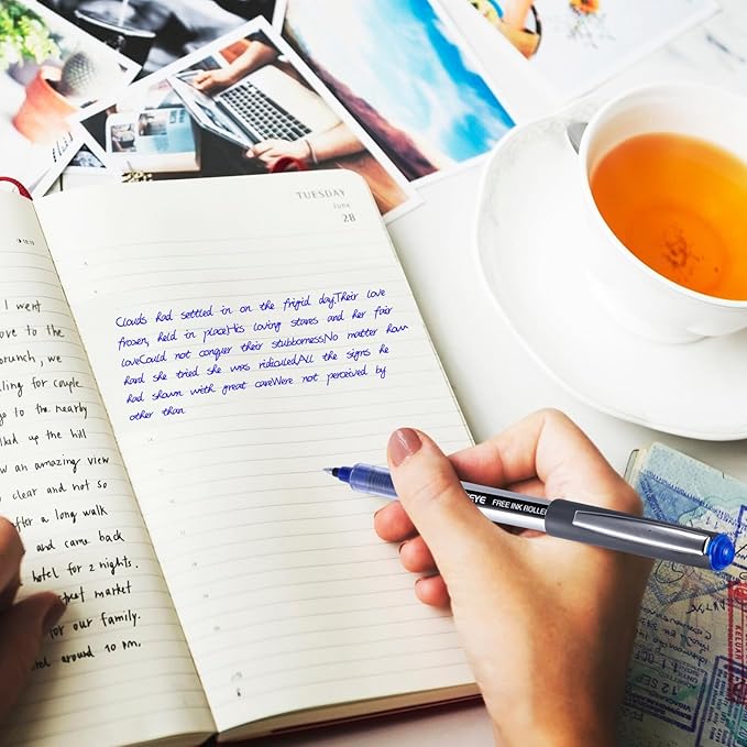 - Smooth Writing: Eyeye rollerball pens blue writes smoothly, gliding effortlessly across the page effortlessly, delivering super smooth precision for crisp lines and detailed writing. Liquid ink pens fine point smooth writing pens for journaling, taking notes, general writing, signatures and other uses anything on paper you have to write.