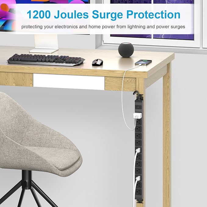 - Industrial Surge Protector: This power strip comes equipped with 1200J surge protector that safeguards your devices from sudden power spikes and fluctuations. The 6ft power cord provides sufficient reach to connect the power strip to a nearby outlet without any limitations. Surge protection and multiple outlets allow all devices to be plugged in with confidence.