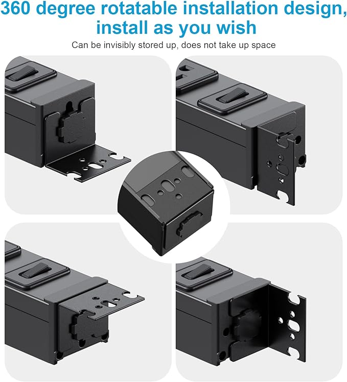 HHSOET 360° Rotating 12 Outlet Mountable Power Strip, Metal Gaming Table Mounted Outlet Strip, Heavy Duty Wall Mount Surge Protector with Switch, Works Great and Very Versatile, 6ft Power Cord.Black