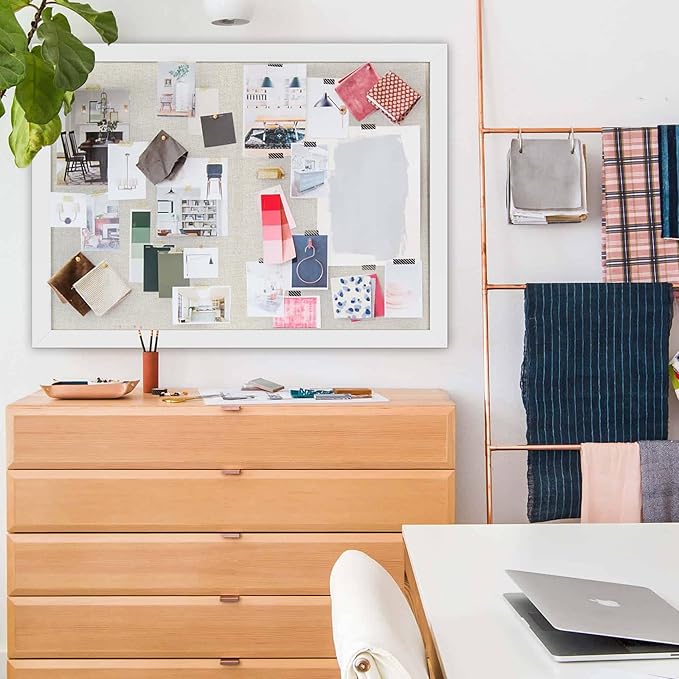 Cork Board Bulletin Board 18" x 24", 2-Pack Large Linen Corkboards with Frame for Walls, Cute Picture Display Pin Board Vision Board for Room School Office Bedroom 40 Pushpins Vintage White