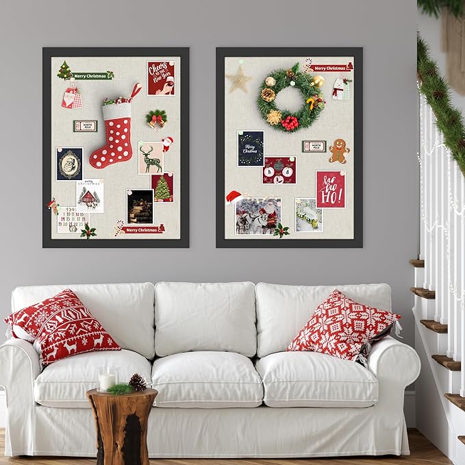 Cork Board Bulletin Board 18" x 24", 2-Pack Large Linen Corkboards with Frame for Walls, Cute Picture Display Pin Board Vision Board for Room School Office Bedroom 40 Pushpins Vintage Black