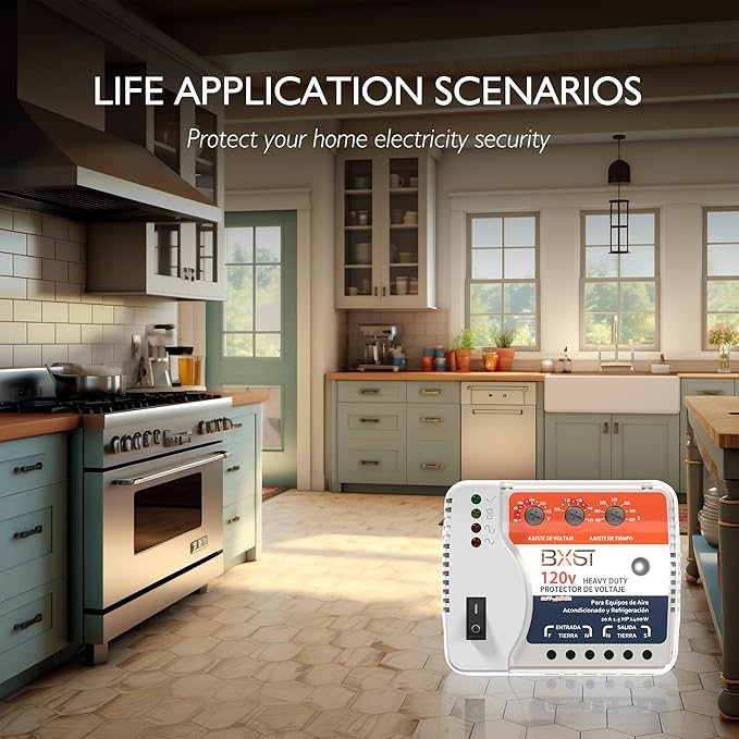 - Customizable Delay Time for Reliable Protection: Features an adjustable delay time (180-300 seconds) to stabilize voltage before power is restored. This function is particularly important for large appliances like refrigerators and air conditioners, preventing frequent restarts and extending appliance lifespan.