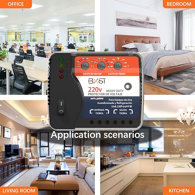 BXST Wiring Voltage and Brownout Surge Protector for Refrigerator TV 4400W Appliance AIR Conditioning Inverter Mini Split Adjustable Over/Under and Delay Time Voltage 20A 220V 140J