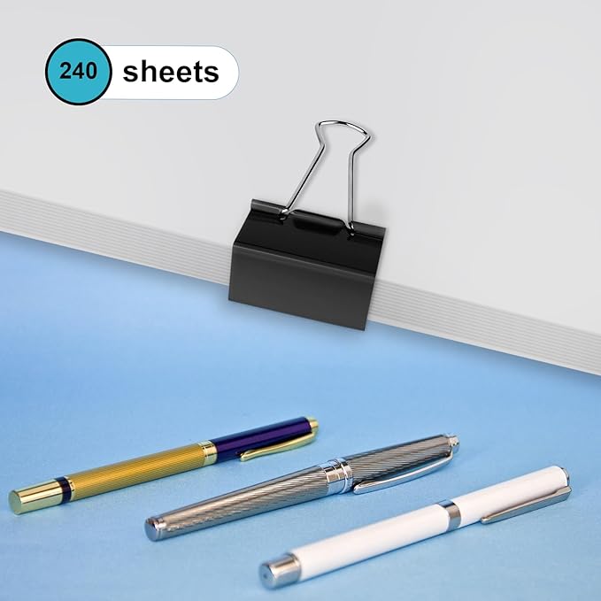 Extra Large Binder Clips Standard 2 inch Length, 1 inch Capacity, 80 Pcs Jumbo Binder Clips for Office