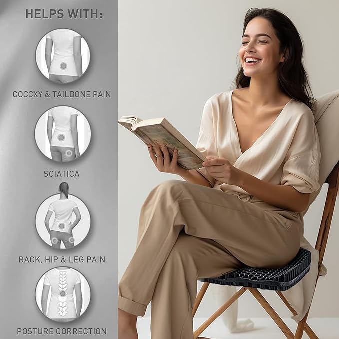 - 【Help Relieve Pain】Effectively prevent and alleviate various pain symptoms, including tail bone problems, lumbar strain, sciatica, and degenerative disc disease. Relieve sedentary fatigue, avoid soreness and numbness caused by compression of the buttocks muscles, create a relaxed and comfortable sitting position, and let the body relax better.