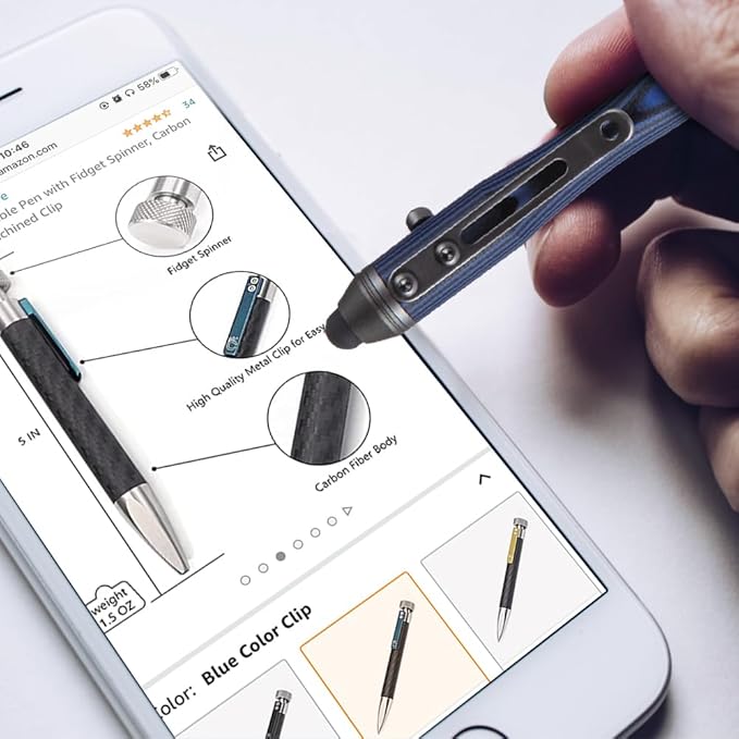 Cool Hand 5.7'' Bolt Action Pens, EDC Ballpoint Ink Refillable, Stylus for Touch Screen, G10 Body w/Pocket Clip, Ergonomic Grip, with a Free Refill, 5375-N