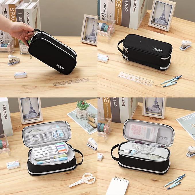 - Large Capacity Design: The dimensions are 9.46" x 4.33" x 3.16" This pencil case allows up to 80-100 pens/pencils, 20cm rulers, pencil sharpeners, and other stationery gadgets.