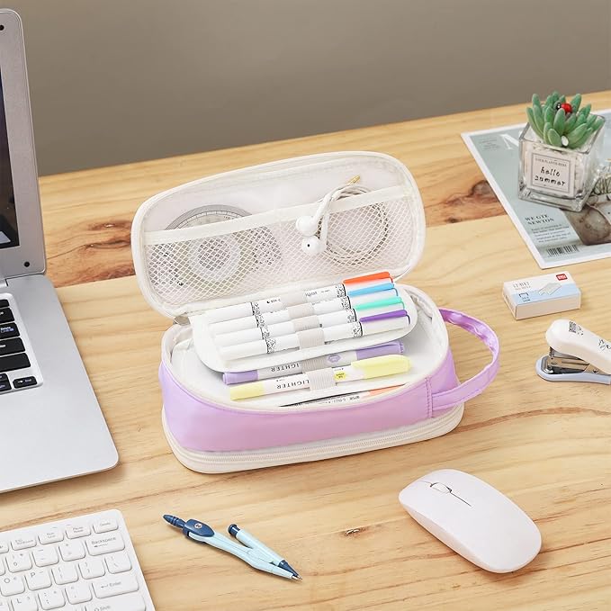 Dugio Big Pencil Case for Girls Teens Kids Zipper Pencil Pouch with Handle Organizer Pencil Bag Aesthetic Pencil Pen Case for School Purple