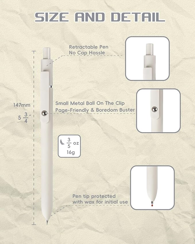 - Precision Fine Point and Fun Features:Featuring a 0.5mm black ink rollerball, our gel pens provide precision and clarity. Embrace the aesthetic stuff with a small metal ball on the clip for fidgeters. These pens go beyond office supplies,they're the ideal gifts for men and women who appreciate the perfect fusion of functionality and style.