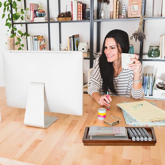 - EFFORTLESS ORGANIZATION FOR DESK & HOME: Keep your essential items neatly arranged and instantly accessible. This elegant wooden tray declutters your workspace or entryway, saving you time and eliminating the frustration of searching for misplaced pens, keys, or mail.