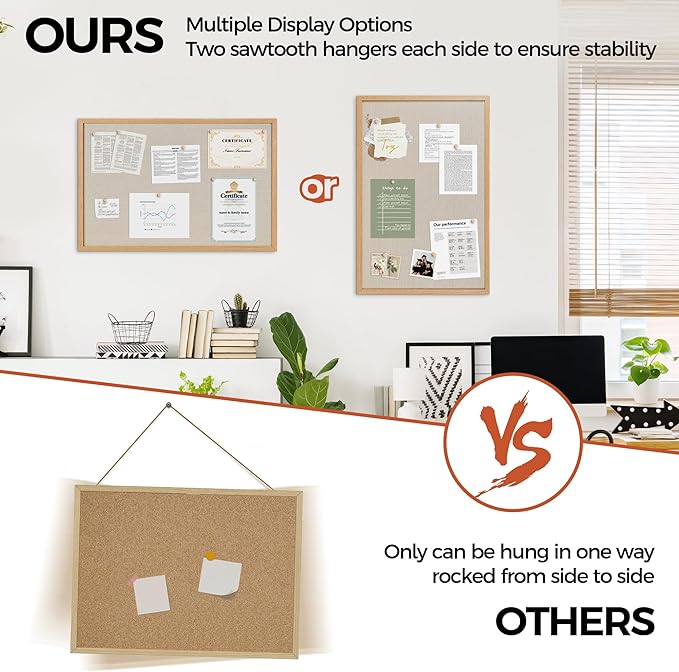 - Unique Design: Easily customize the board orientation to fit your space. Natural cork bulletin board add a classic look to your office or home. Both strong and stylish, it will be a great addition to your space.