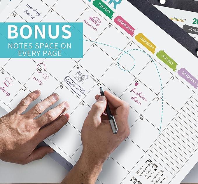 - Effortless Organization and Abundant Writing Space: Effortlessly organize your schedule and never forget important details with our spacious 17" x 12" desk calendar, which provides ample writing space in generously sized daily grid blocks and dedicated monthly note columns for jotting down additional information, goals, or ideas while keeping your schedule neat and organized, complete with holidays and important dates for your convenience.