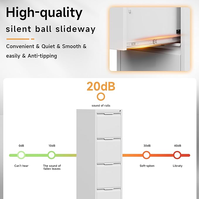 - đ§©ăSMOOTH MUTE SLIDE RAILSă: Our metal file cabinets are made with full retractable mute slide rails, open and close smoothly, easy to pick up and put down folders without noise. Perfect for office, home and school use. And the vertical appearance design can maximize the effective use of space, so that your space is not wasted!
