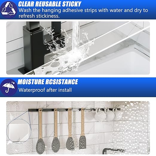 - 【Removable&No Residue】The removable adhesive strips leaves no sticky residue, Our thick adhesive tape works well on almost any smooth surface, such as walls, wood, ceramic, tile, glass, mirror, metal, plastic, marble, etc.