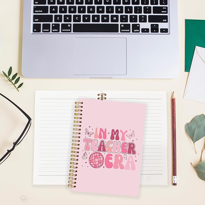 BearCake Groovy Teacher Notebook Journal, Teacher Gifts for Women, Teacher Appreciation Gifts, Thank You Teacher Gifts, Teacher Desk Supplies, in My Teacher Era Pink Hardcover Spiral Notebook 5.5x8.3